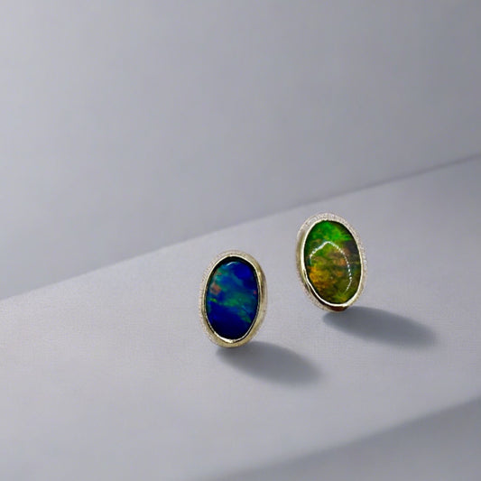 Australian Opal Doublet Sterling Silver Stud Earrings