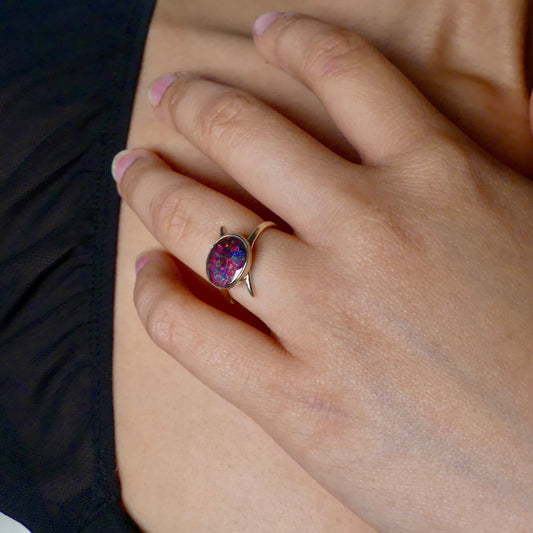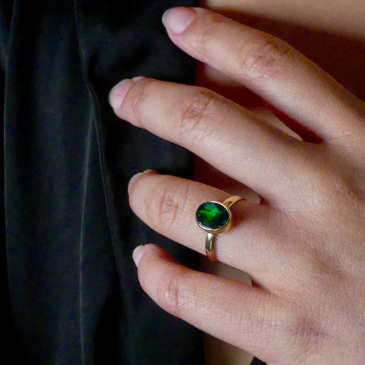 Unique & Luxurious Lightning Ridge Opal Ring in 9k Gold Setting
