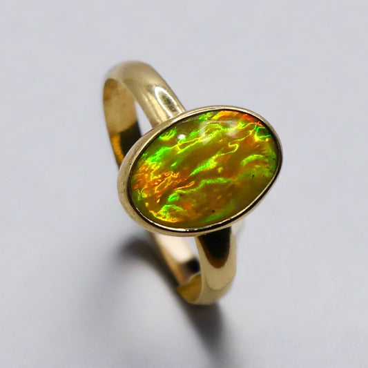 Genuine Australian Treasure in 9k Gold Lightning Ridge Opal Ring