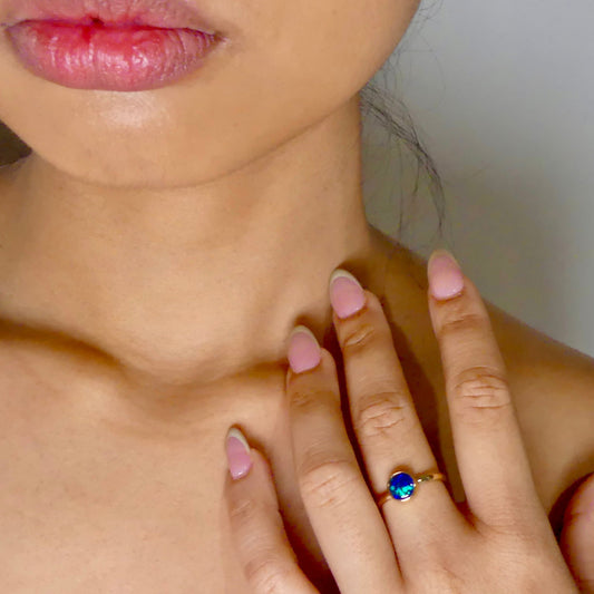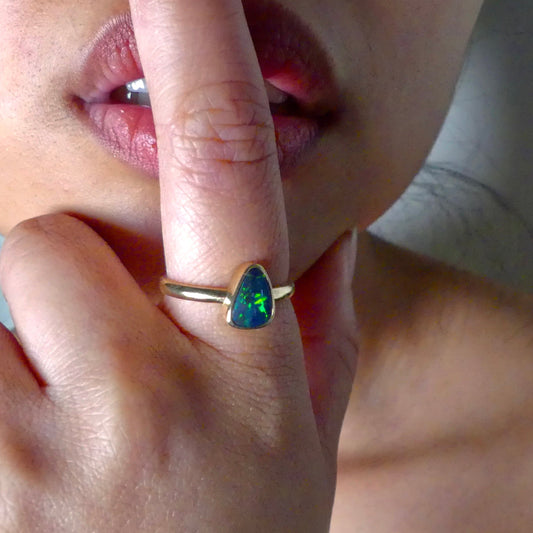 Handcrafted Lightning Ridge Opal Ring in 9k Gold