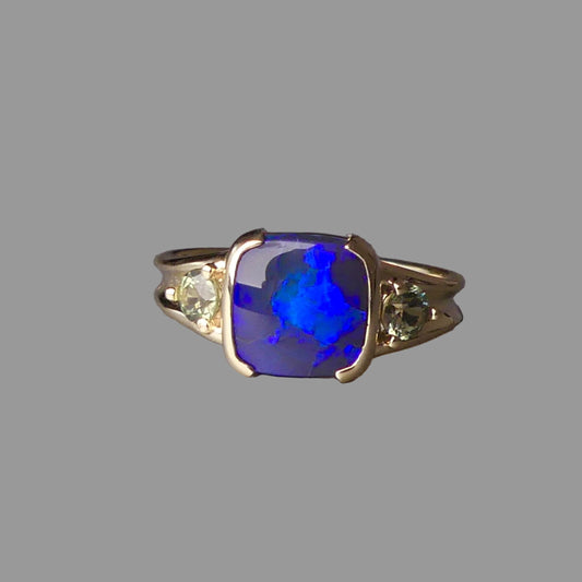 Elegant Statement Piece Australian Black Opal Ring in 14k Gold