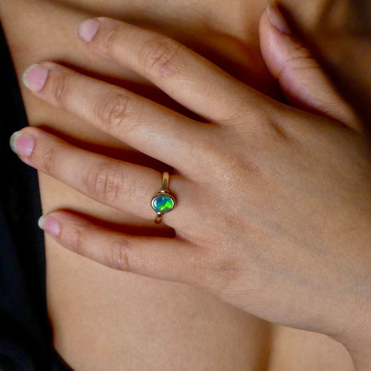 Genuine Australian Treasure in 9k Gold Lightning Ridge Opal Ring