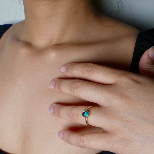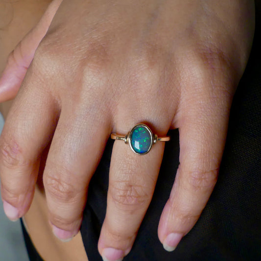 Elegant 9k Gold Ring Featuring Stunning Australian Black Opal
